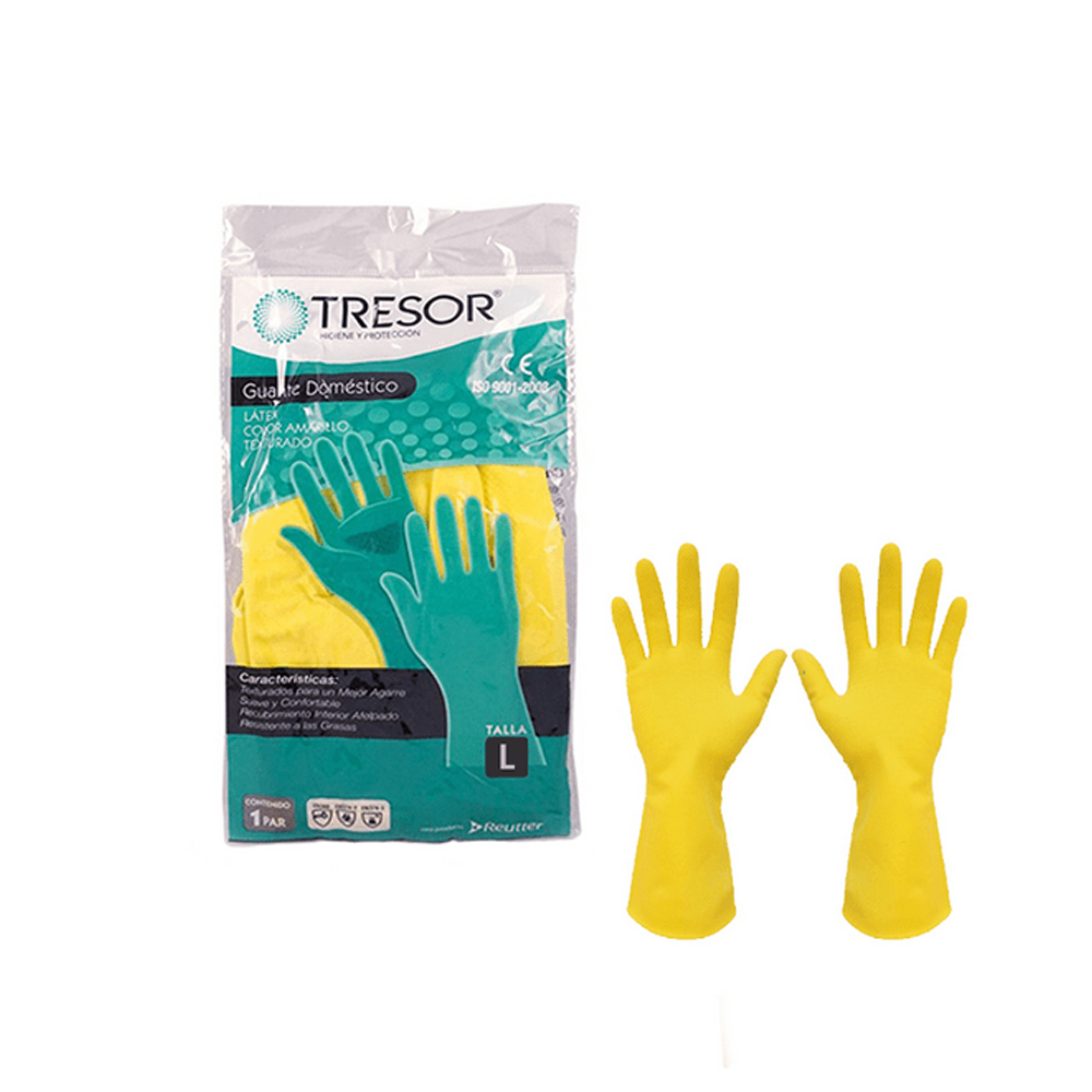 Guante Doméstico Látex Talla L Amarillo Tresor cantidad