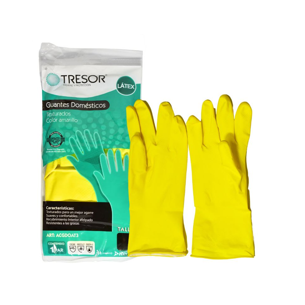 Guante Doméstico Látex Talla XL Amarillo Tresor cantidad