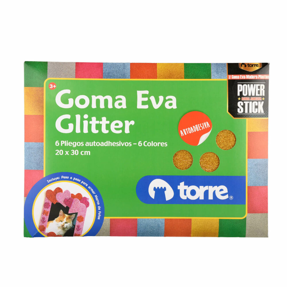 Goma Eva Adhesiva Estuche Glitter 20x30cm 6 Colores Torre
