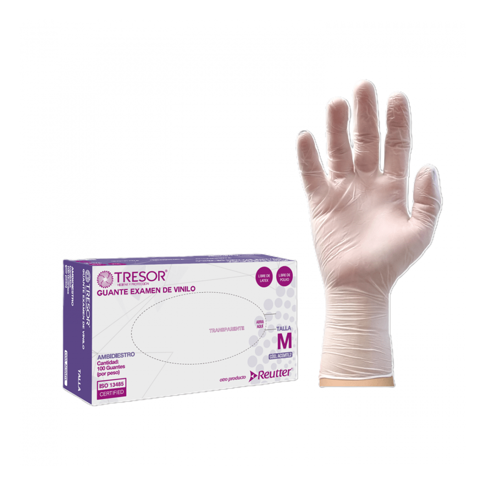 Guante de Vinilo Transparente Talla M 100 Unidades Tresor