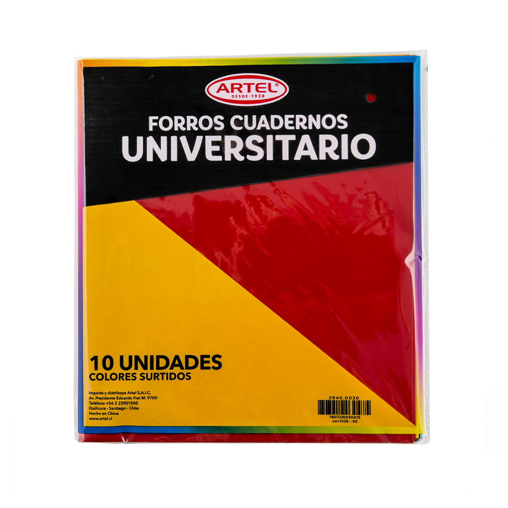 Forro Cuaderno Universitario Colores 10 Unidades Artel cantidad