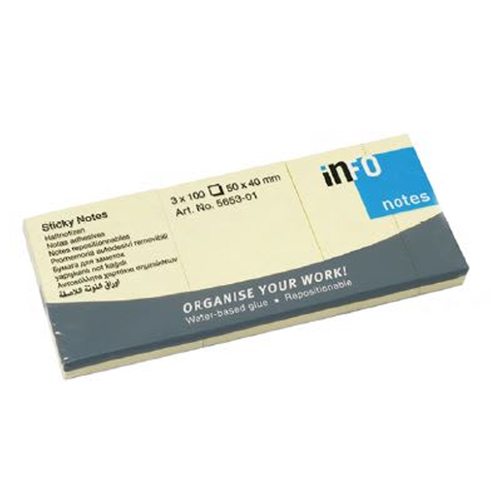 Nota Adhesiva 3 Pads Amarillo 40x50mm 100hjs Info Notes