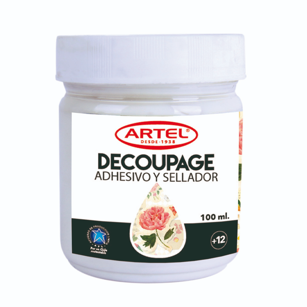 Producto especialmente formulado para trabajar la técnica de Decoupage y ha sido desarrollado en base a agua y resinas acrílicas modificadas, que le otorgan al producto un gran poder adhesivo y sellante.No contiene solventes