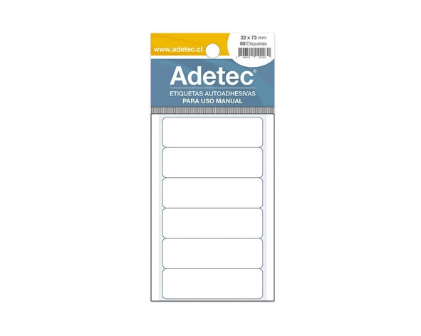 Etiqueta manual 22×73 mm, Tamaño: 22×73 mm, contenido hojas: 10, contenido etiquetas: 60, color: blanca