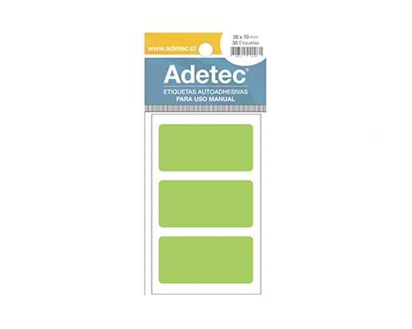 Etiqueta manual verde fluor 35×70 mm, tamaño: 35×70 mm, contenido hojas: 10, contenido etiquetas: 30, color: verde