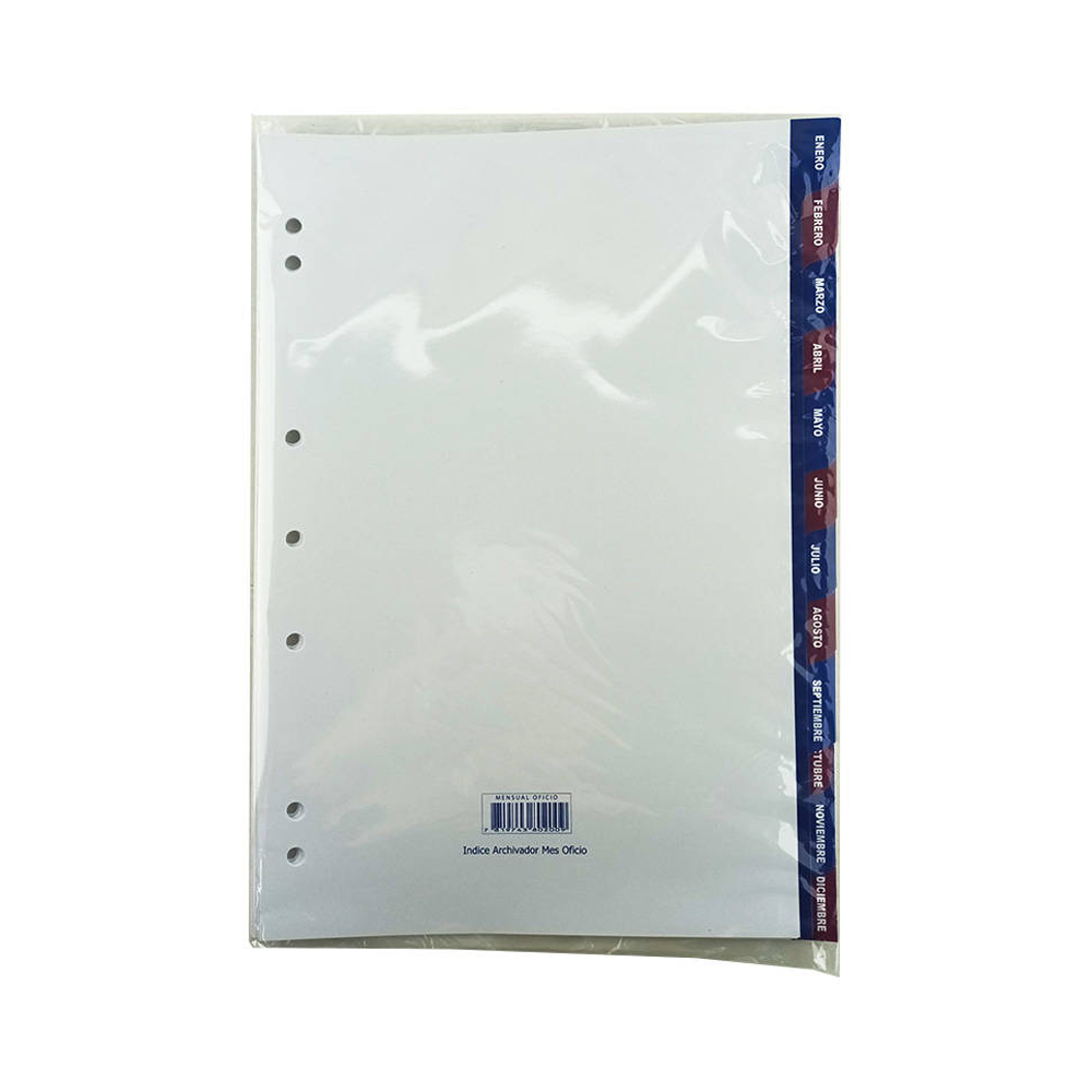 Separador Oficio Cartulina Mensual 12 Divisiones Blanco 23x32cm Bangráfica